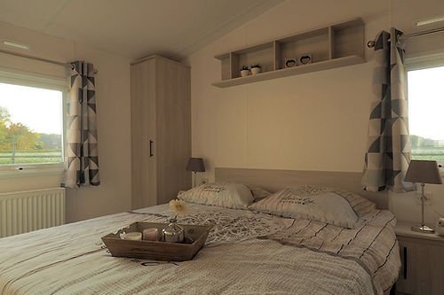 Le Bergline Lodge a été soigneusement sélectionné et est extrêmement populaire en raison de son excellent rapport qualité/prix ! Les grandes portes de terrasse et les grandes fenêtres devant le mobil-home créent beaucoup de lumière. Le Bergline Lodge se caractérise par les trappes modernes à l’avant du mobil-home !
