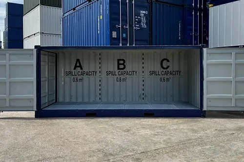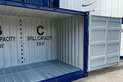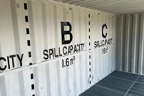 conteneur maritime de 20 pieds « Open Side » avec bac de rétention (drip tray)