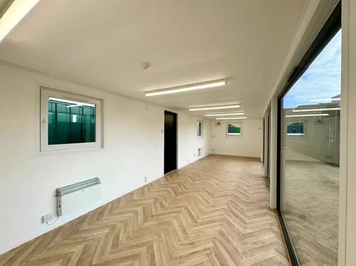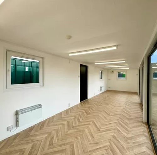 Cette cabine modulaire est livrée prête à l’emploi, avec une configuration pensée pour maximiser la lumière naturelle, le confort thermique et la sécurité. Elle est idéale pour une utilisation sur chantier, en base vie, ou comme bureau temporaire dans un cadre professionnel ou événementiel.