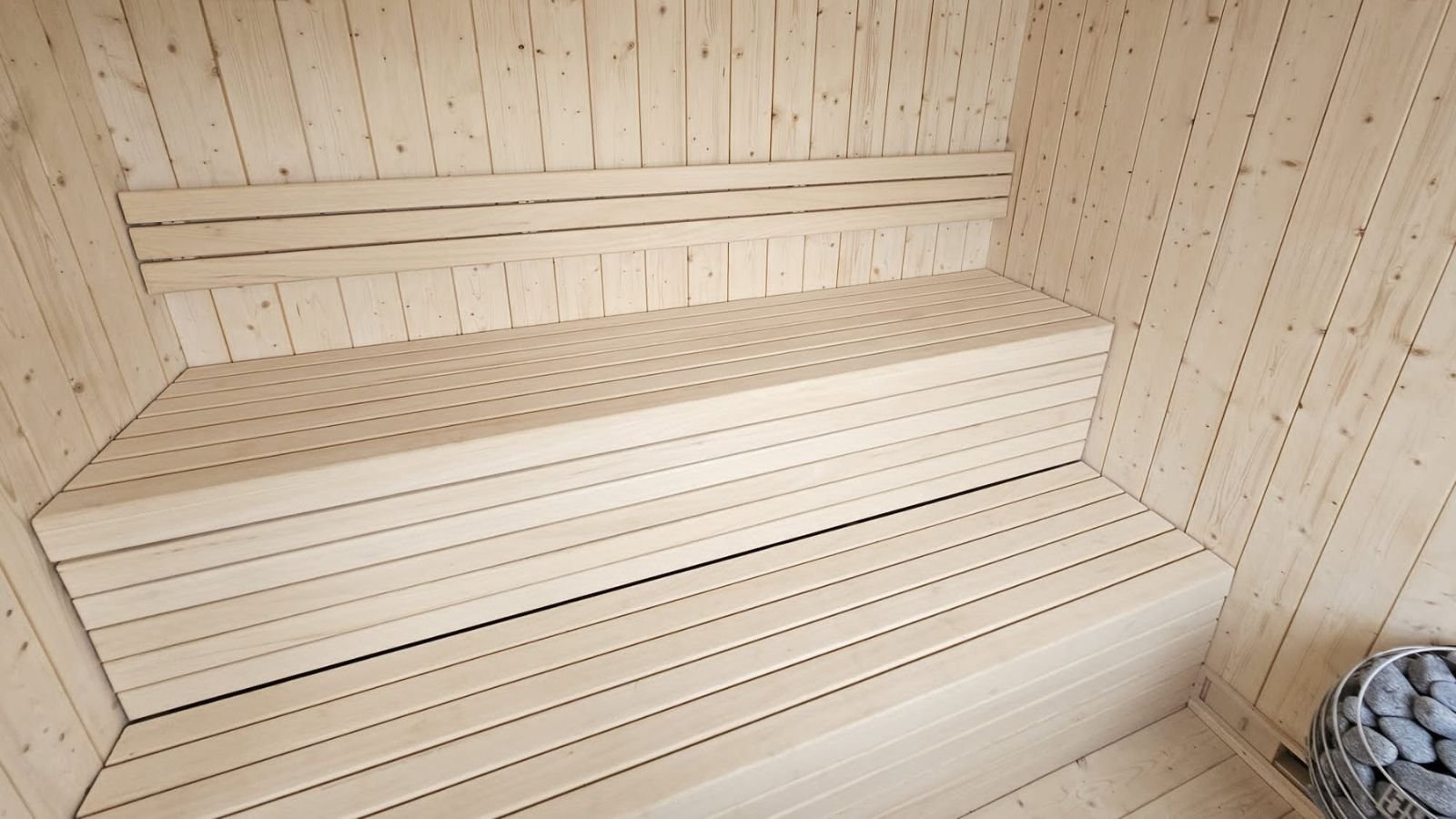 Sauna modulable de 10 m² avec espace de repos, standard clé en main