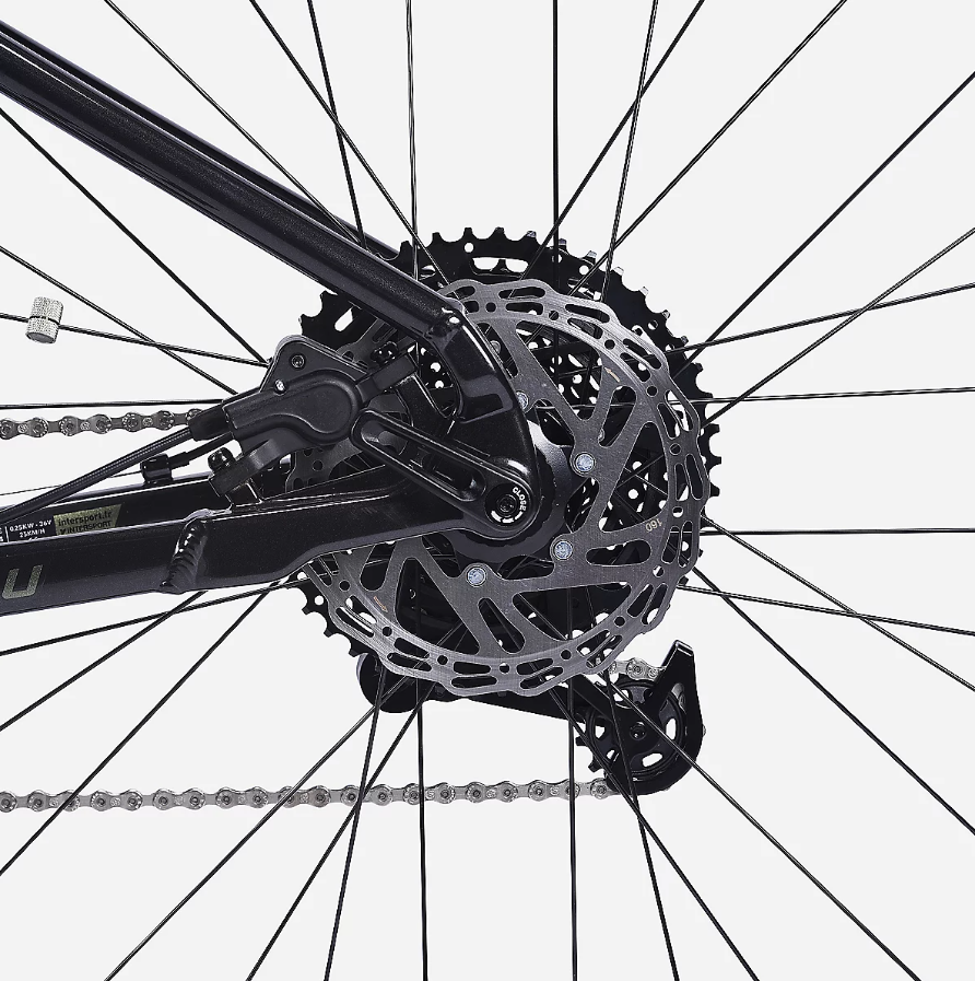 Les 9 vitesses associées à la cassette 11/46 offrent une grande polyvalence permettant de grimper toutes les côtes.