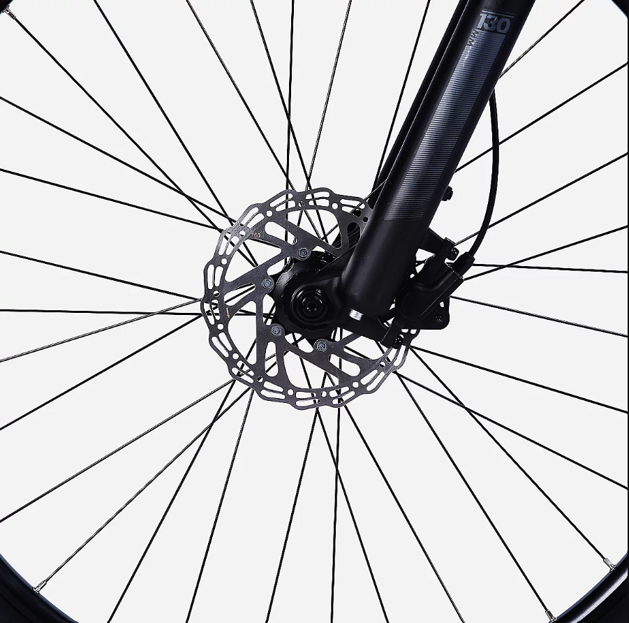 Profitez d’une conduite confortable grâce à la fourche de 130 mm qui sera là pour encaisser les chocs et vous permettre de rouler sur tout type de terrains.